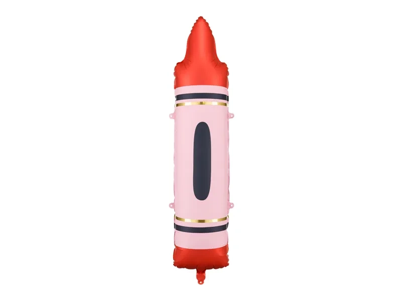 Balon foliowy Kredki, czerwona. Wymiary przed napompowaniem ok. 34,5x108 cm, wymiary po napompowaniu ok. 23x104 cm. Do napompowania powietrzem i helem. Zestaw zawiera słomkę.