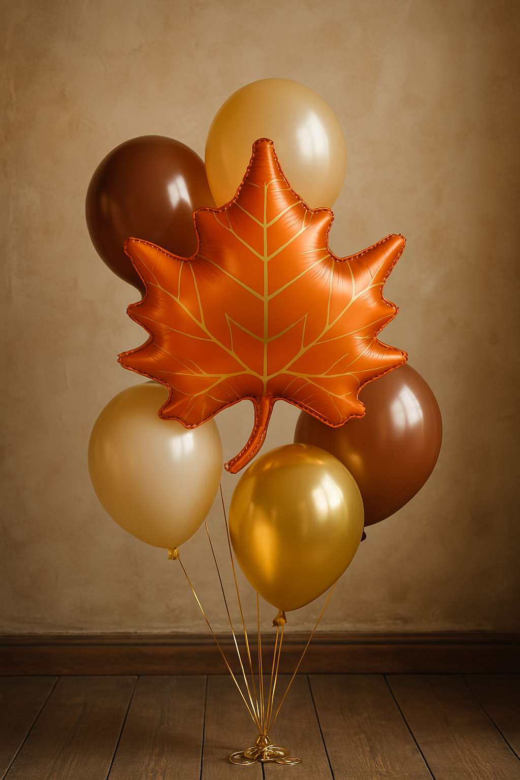 - Balon w kształcie liścia jesiennego o wymiarach 60x50 cm idealna dekoracja na przyjęcia tematyczne związane z jesienią, Halloween lub na imprezy dla dzieci.
