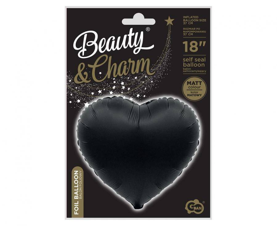 Balon foliowy - "Serce", czarne matowe, rozmiar przed napełnieniem: ok. 45cm - 18". Balon foliowy, do napełnienia helem lub powietrzem.
