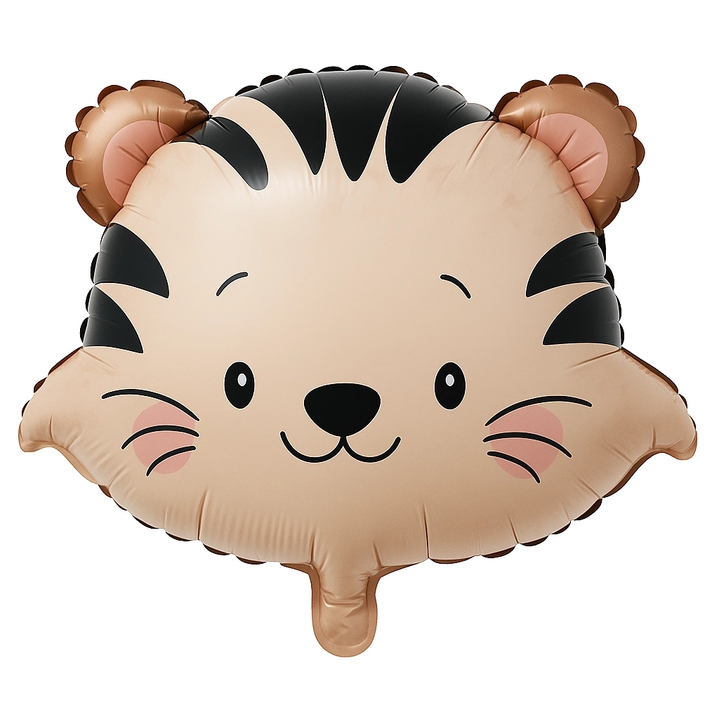 - Balon foliowy w kształcie tygrysa, doskonały dodatek do urodzin, imprez tematycznych i dekoracji pokoju dziecięcego. Wymiary 55x50cm.