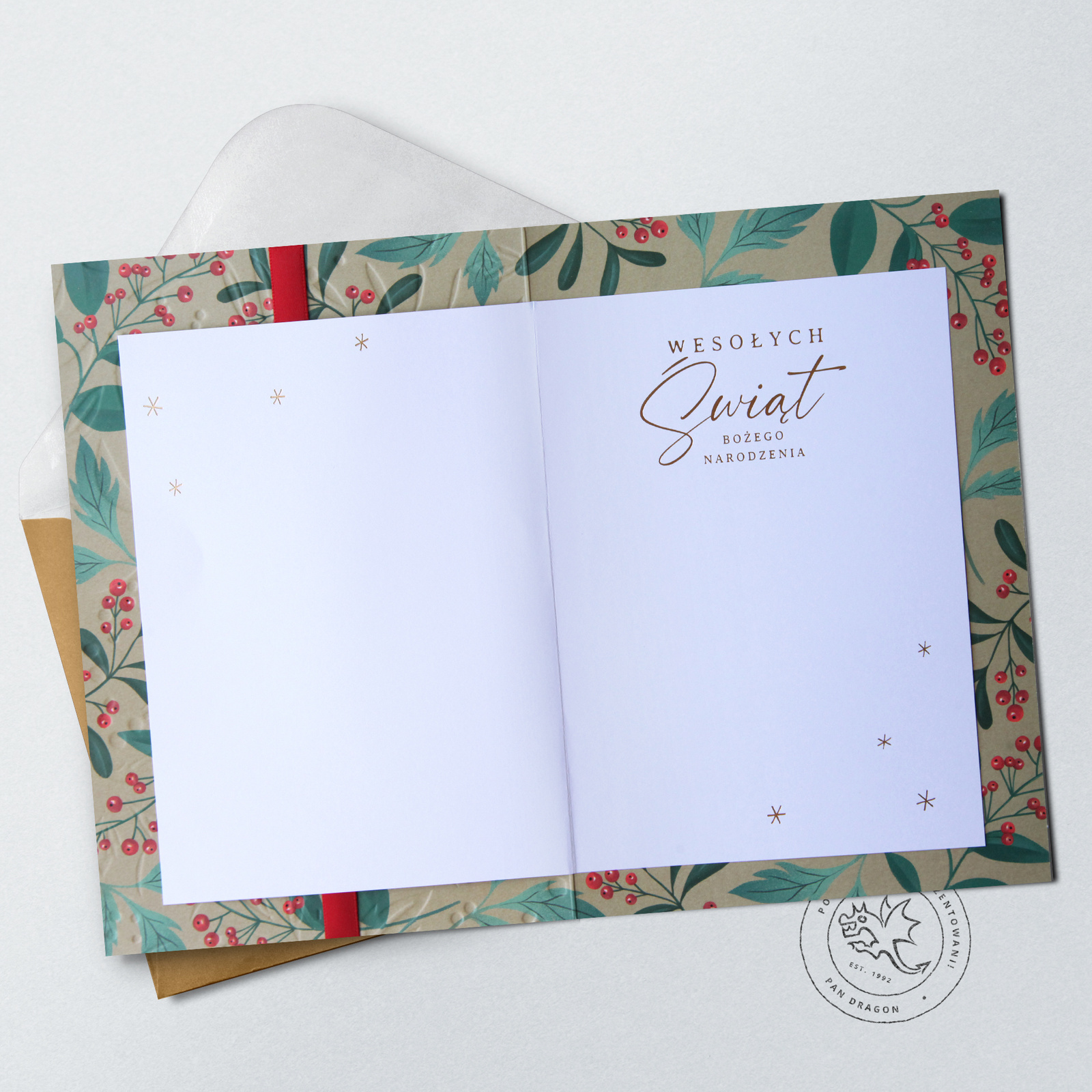 W zestawie znajduje się koperta, kolorystycznie uzupełniająca się z kartką