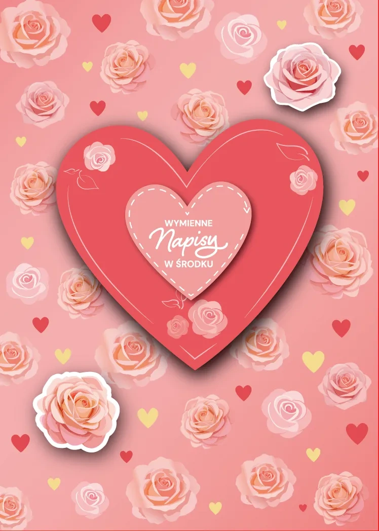 • Kartka walentynkowa z wymiennymi napisami.
