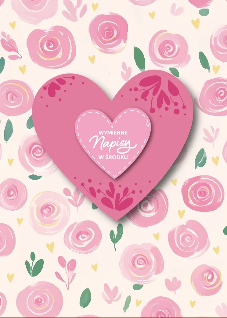 • Kartka walentynkowa z wymiennymi napisami.