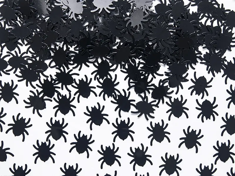 - Konfetti Pająki w kolorze czarnym. Takie niezwykłe konfetti w pająki, będą wyglądać klimatycznie na stole! Idealne na imprezę z okazji Halloween. Wystrasz swoich gości i ich zaskocz! Wymiary 1,2 x 1,2 centymetra. Waga opakowania 15 gram.