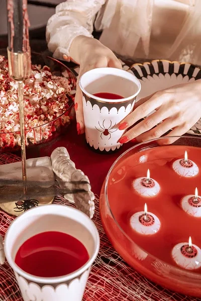 • Kubeczki papierowe Pająk. Zestaw składa się z 3 czarnych i 3 beżowych kubeczków, każdy z nich zawiera złoty, błyszczący nadruk pajaka. Wysokość ok. 11,5 cm, pojemność ok. 400 ml. Produkt jednorazowego użytku.