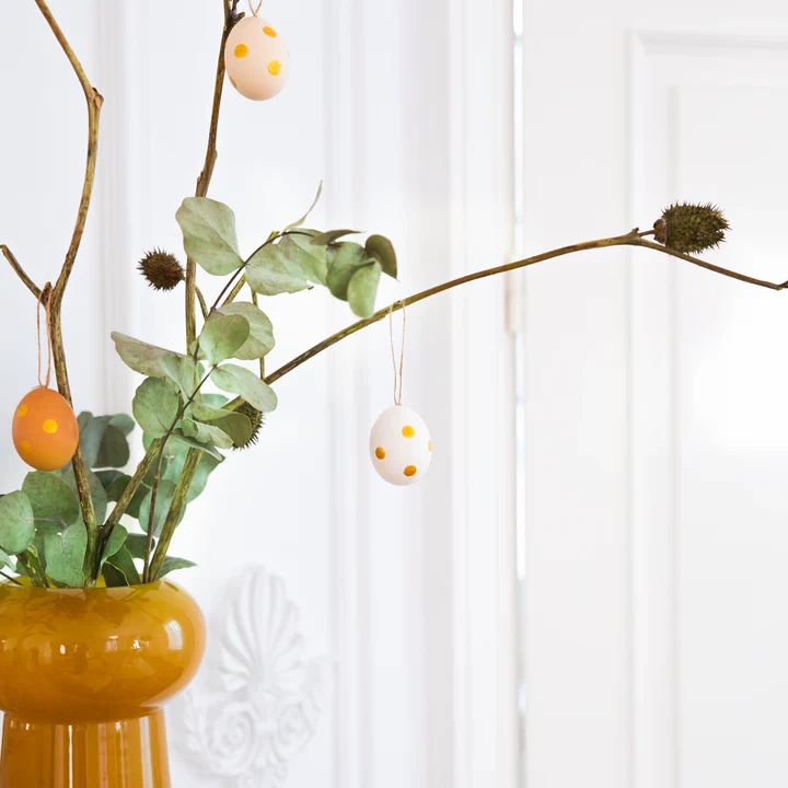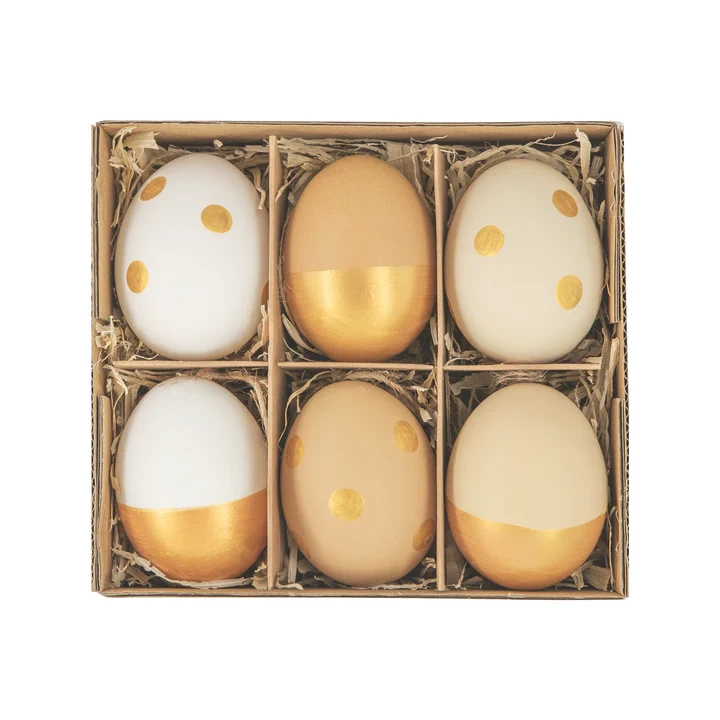 Pisanki naturalne wydmuszki 6 szt. Szerokość: 4 cm Wysokość: 6 cm 3 odcienie naturalnych skorupek, 2 wzory po 3 szt. Materiał: naturalna skorupka Zawieszka ze sznurka jutowego