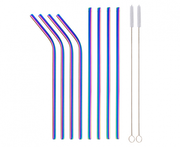 - Zestaw metalowych słomek w kolorze tęczowym.