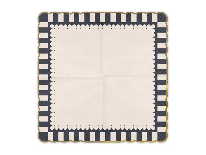 - Papierowe serwetki ze złotym, błyszczącym brzegiem. Wymiary po rozłożeniu ok. 33 x 33 cm, wymiary po złożeniu ok. 16.5 x 16.5 cm.