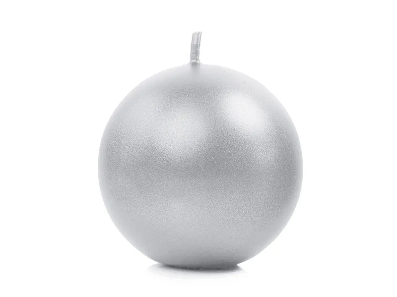- Świeca metalizowana Kula w kolorze srebrnym. Niezbędny element wystroju na przyjęcia tematyczne. Ozdoba dostępna w kolorze srebrnym, będzie idealnym dopasowaniem do wystroju wnętrza.