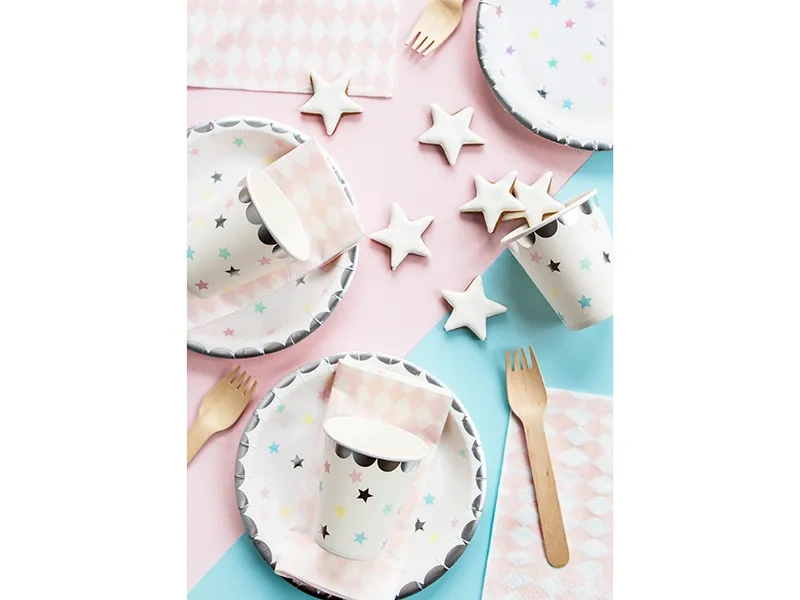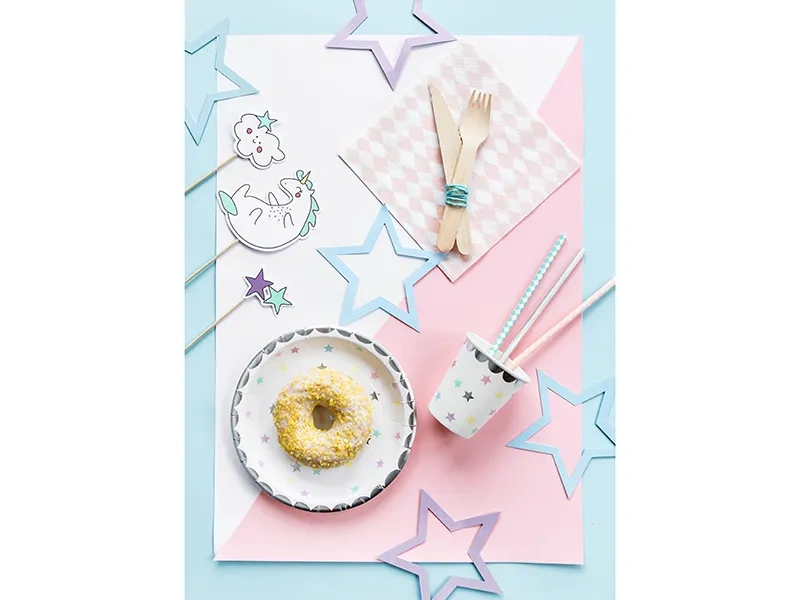 - Talerzyki papierowe Jednorożec - Gwiazdki, średnica ok. 18 cm.