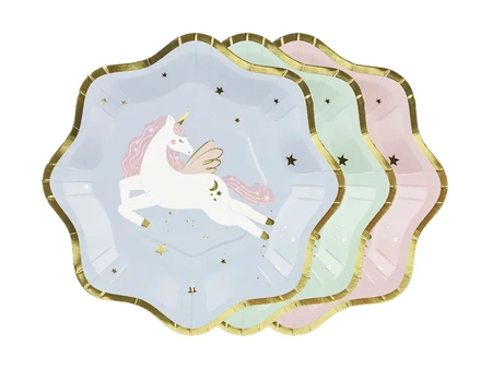Talerzyki papierowe Jednorożec, mix kolorów, wymiary ok. 18 x 18 cm