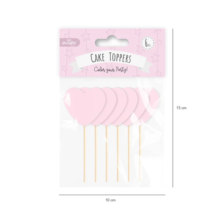 • Toppery na tort różowe serca. Zestaw zawiera 6 sztuk. Wymiary: ok. 9cm.