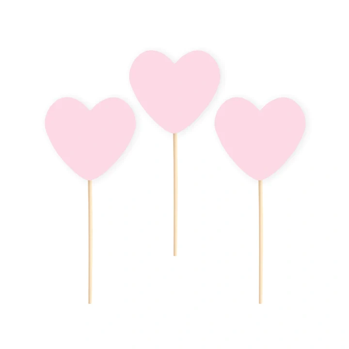 Toppery na tort serca różowe 6szt.