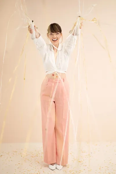 • Tuba manualna z serpentynami o długości ok. 6 m w kolorze białym i złotym, długość ok. 25 cm.