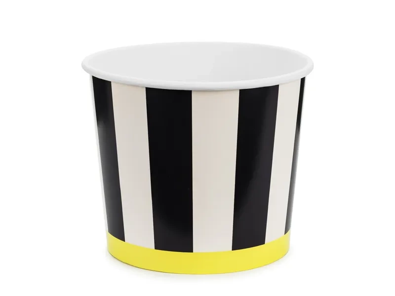 - Zestaw dwóch papierowych wiaderek na przekąski. Wysokość około 14 cm, średnica 13-16,5 cm.